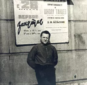 I was photographed against the background of the poster of a dancing school in Leningrad. I don’t remember who took this picture. It was approximately in 1958.