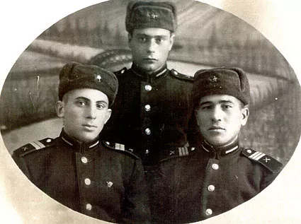 My son Izia Gershman ( in the center) and his fellow comrades in the army. Izia is wearing the Soviet army uniform of that time. The photo was taken in 1955 in Uzbekistan. My son sent this photo to me.