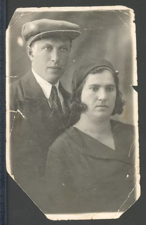 This is a photo of my parents, Israil and Galina Maron (maiden name Kosoi). It was taken in 1931 by the Chechersk photographer Portnov, right before my birth. Here my father is 26 and my mother is 24. He was known for his unusual charm and desire to help any person in need. He might even take off his last shirt.