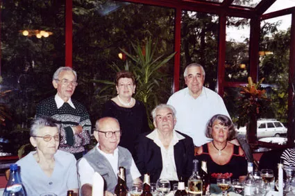 This photograph was taken at the Rhapsody Hotel in 2005, at the meeting marking the 50th anniversary of the graduation of the commercial high school, the Technical Middle School of Statistics, as it was called. We organized a meeting every five years here, in Botosani. First and foremost, the first on my left is my wife, Aurelia Rotariu, I, Saul Rotariu, am the one next to her, then Mr. Mihai Anton, who works as an accountant for the [Jewish] Community but is a Christian. In the back row, standing between me and my sister is Armanu, a colleague of mine, and the other persons are from Israel, the one in the back on the right is also a colleague of mine whose name I forget, the woman standing in the middle is named Ethel, and the last name of the woman on the left in the front row is Kohn; I forget her first name.