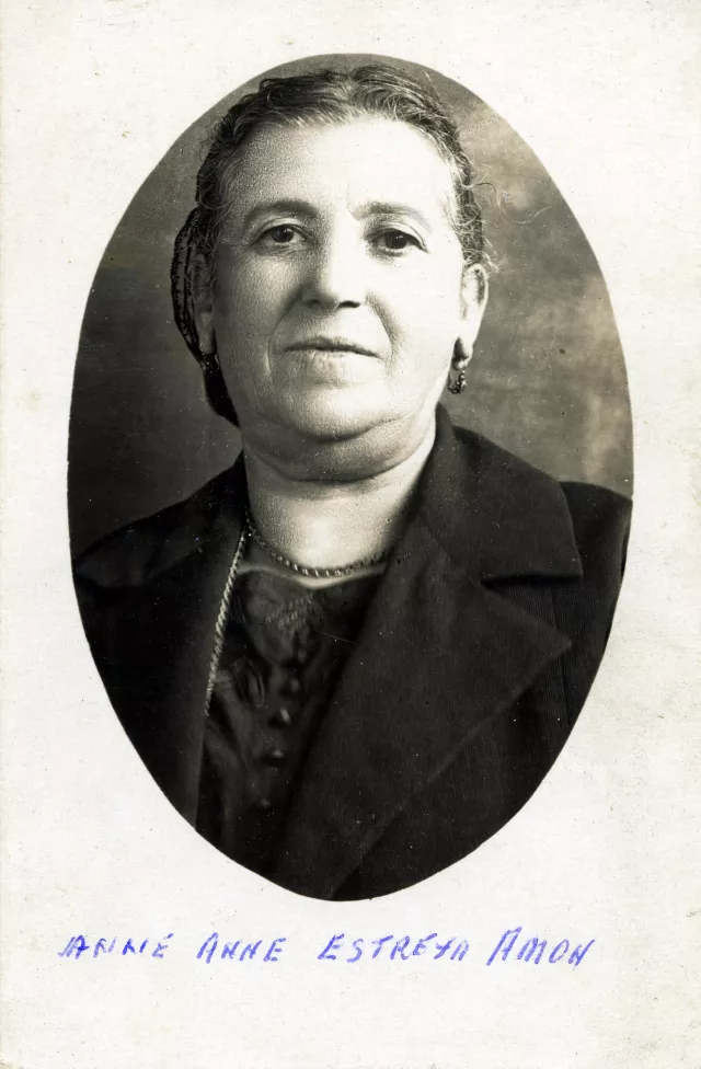 This is a studio photo of my maternal grandmother Estreya Amon. In this photo my grandmother looks exactly at the age I remembered her. My grandmother was married to Izak Amon but I never knew my grandfather because he died when I was very young. I remember my grandmother very vividly however, because she lived with us after my grandfather died for 6-7 years.