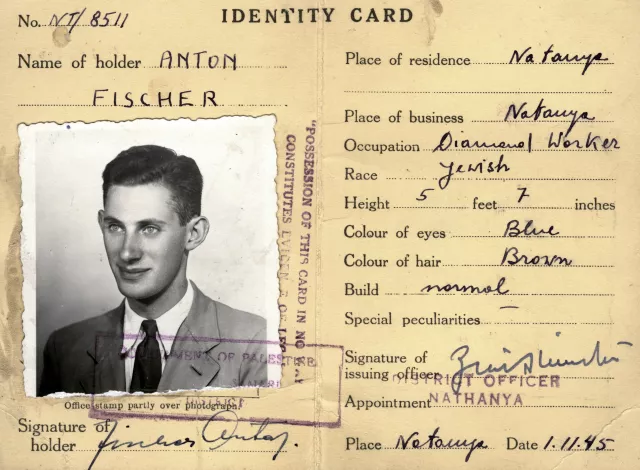 Das ist meine Identitätskarte in Palästina, ausgestellt in Natanya im Jahr 1945.