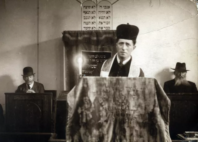 Das ist mein Vater als Rabbiner vor 1925 im Tempel in Lainz, das ist ein Teil des 13. Wiener Gemeindebezirks.