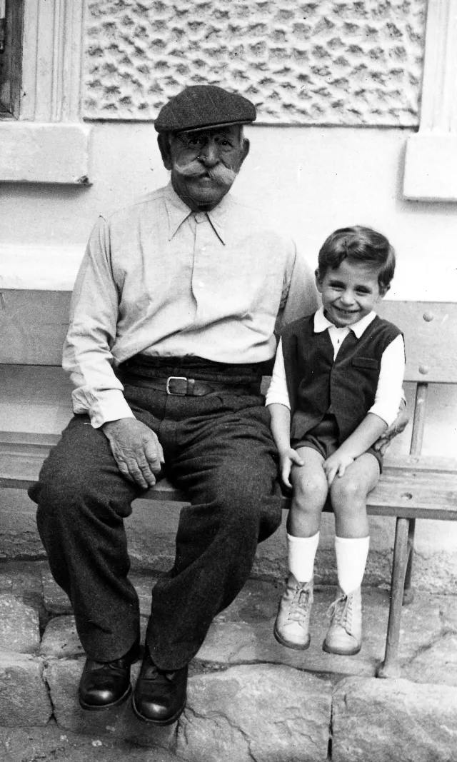 Den Mann, der hier neben meinem Sohn Tommy sitzt, kenne ich nicht. Da waren wir irgendwo auf Urlaub in Österreich. Da ist der Tommy ca. fünf Jahre alt.
