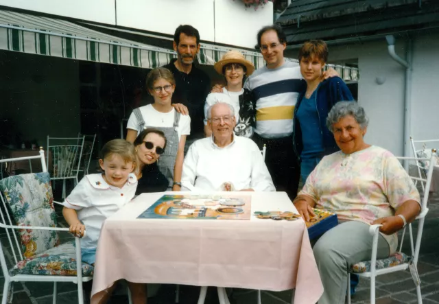Mein jüngerer Sohn Warren steht rechts, Barretts Frau Grace steht in der Mitte.