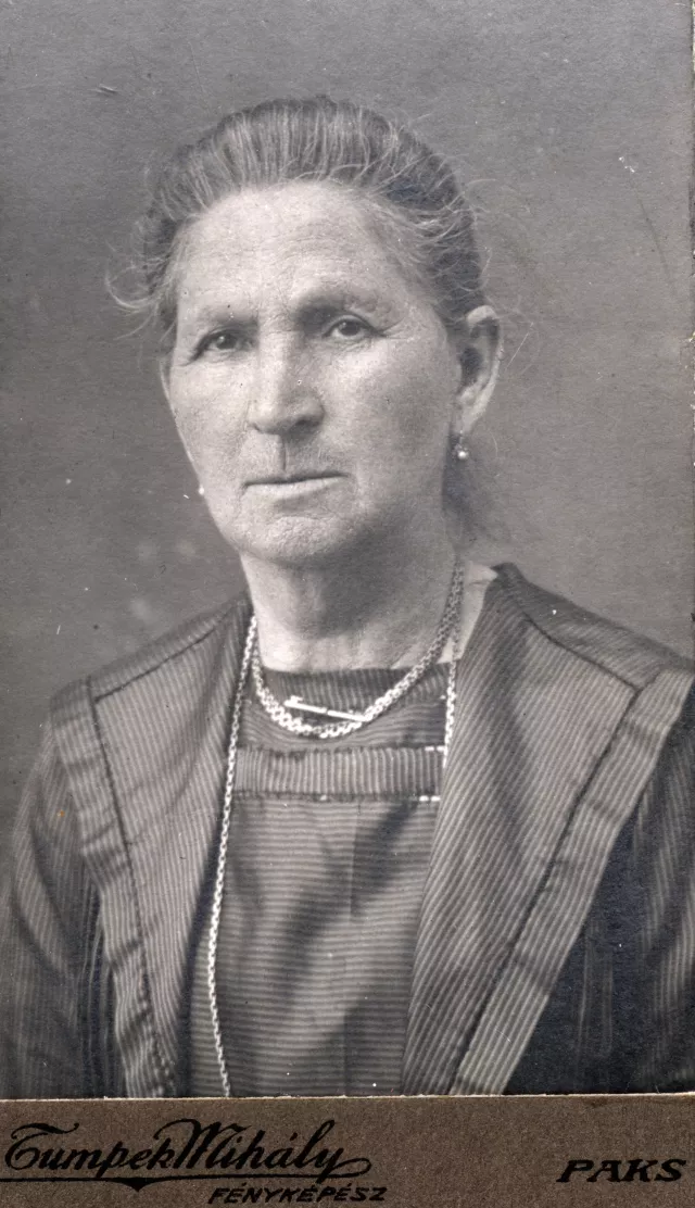Wann sie geboren wurde, weiß ich nicht, aber sie war jünger als der Großpapa Vilmos Wertheim. Dieses Foto wurde in den 30er Jahren im Fotostudio Tumpek Mihaly in Paks aufgenommen.