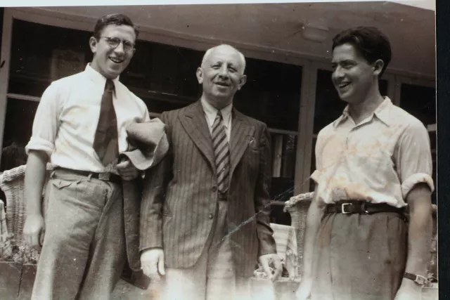 Auf dem Foto sind mein Schwiegervater Adolf Goldmann in der Mitte, mein Mann Moshe ist der Linke, und ein Cousin meines Mannes ist der rechte im Bild.