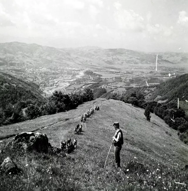 Er wurde 1943 auch nach Russland geschickt. Auf dem Foto sieht man im Hintergrund die Arbeitsdienstler und im Vordergrund steht der Aufpasser.