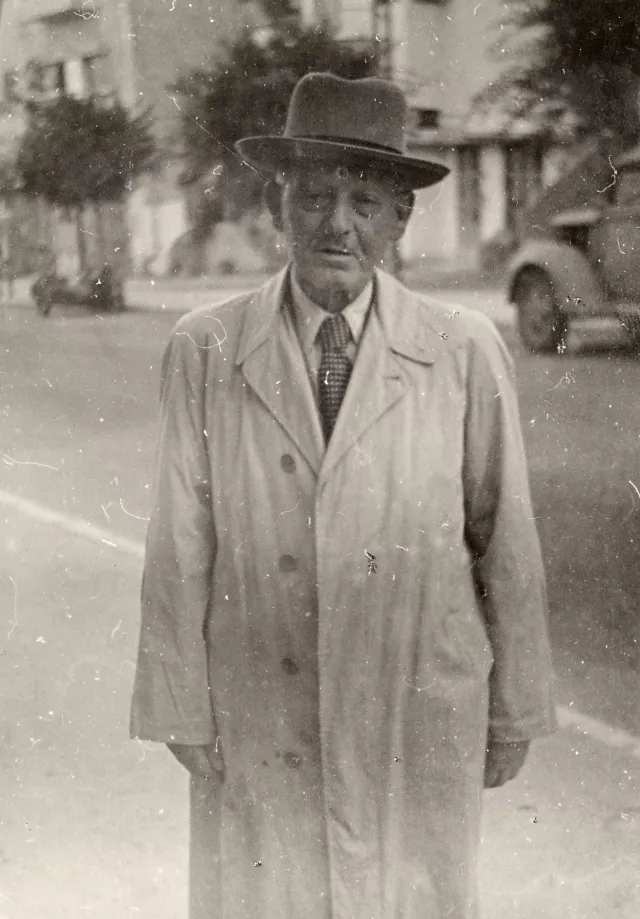 Als wir 1932 geflüchtet waren, sind mein Großvater und seine Frau in Dresden geblieben, und dann als die Nazis kamen, hat man ihn verprügelt und seinen ganzen Besitz weggenommen und in so ein Internierungslager gesteckt.