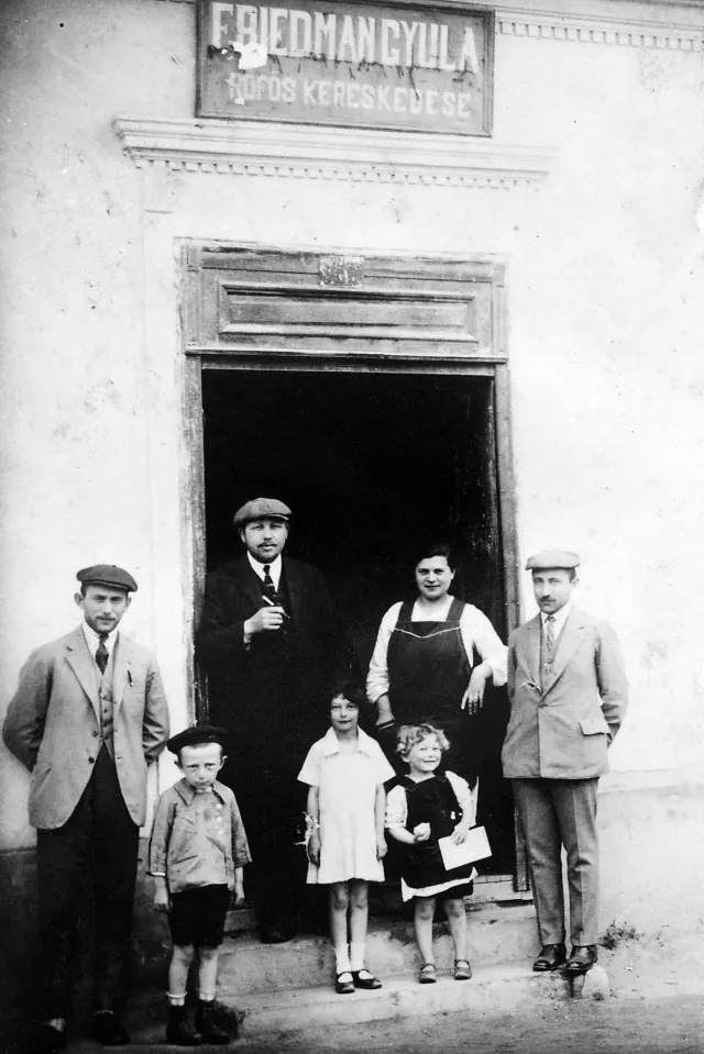 Gyula Friedmann mit seiner Familie vor unserem Geschäft
