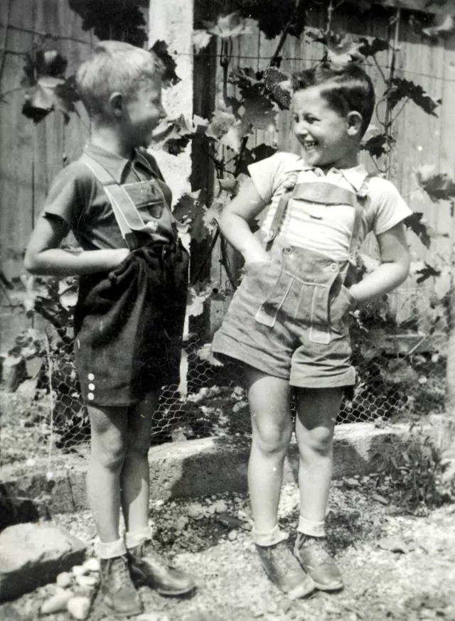 Das ist in Ober Waltersdorf im Jahre 1936. Mein Cousin Georg ist ein halbes Jahr älter als ich.