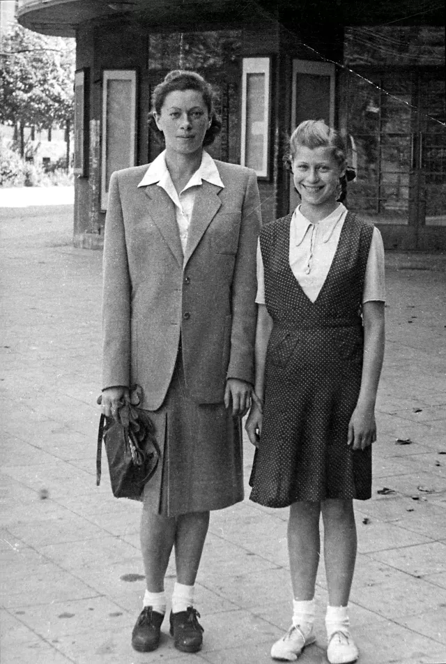 Das bin ich mit meiner Schwester Vera im Jahre 1947 oder 1948, in Waldenburg [poln. Wawrzych].