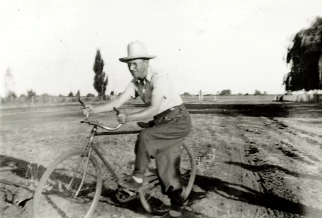 Das ist meinn Onkel Izu nach seiner Flucht aus Österreich in Australien. Dort lebte er das erste halbe Jahr mit seiner Frau und Tochter auf einer Farm.