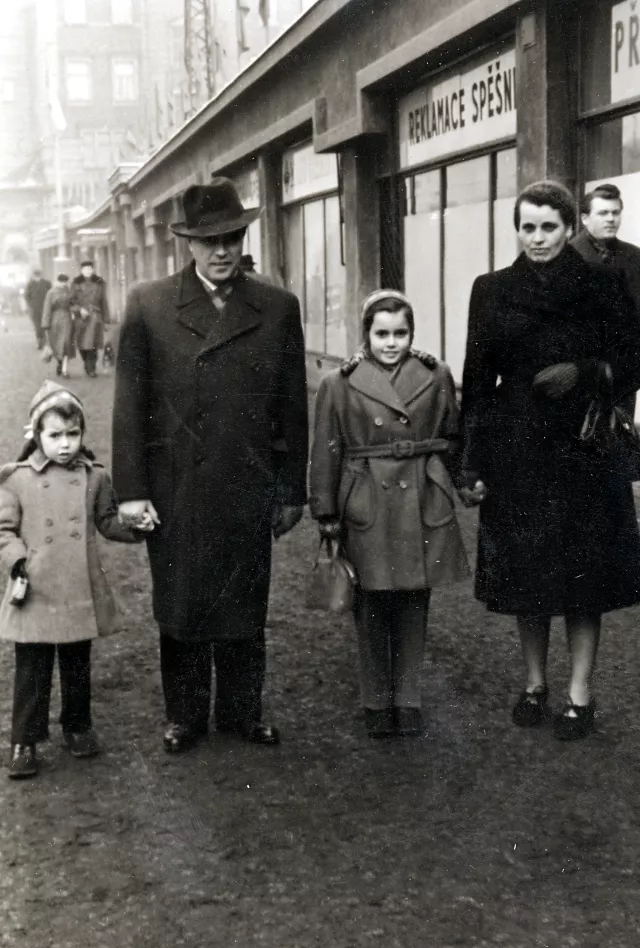 Auf dem Foto steht er mit seiner Frau Aranka und seinen beiden Töchtern Vera und Eva in Prag, der Stadt, in der er bis 1963 gelebt hat.