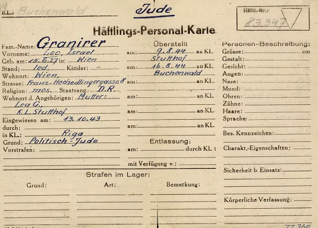 Das Häftlingskomitee hat mir nach der Befreiung einen Entlassungsausweis und meine Häftlings-Personalkarte ausgehändigt