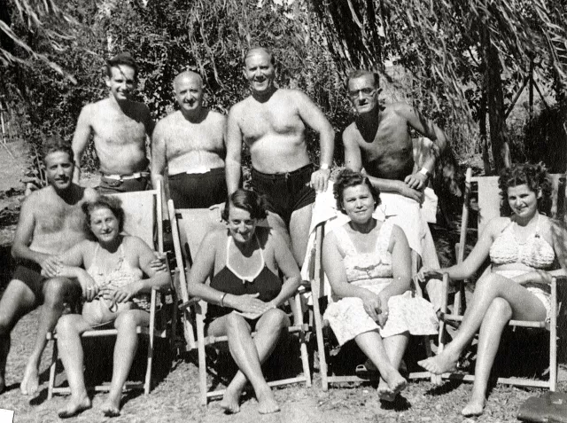 Leopold und Franziska Brodmann mit Freunden nach dem Krieg in Wien an der Donau