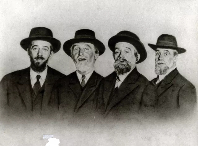 Das ist ein Foto von meinem Vater Mór Eisenberger mit seinen drei Brüdern Sámuel, Chaim und Benjámin Eisenberger.