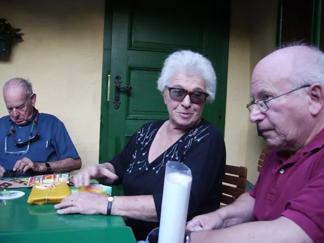 Das bin ich bei einem Heurigenbesuch in Wien mit Nora und Hans Rosen - Freunden aus Israel.