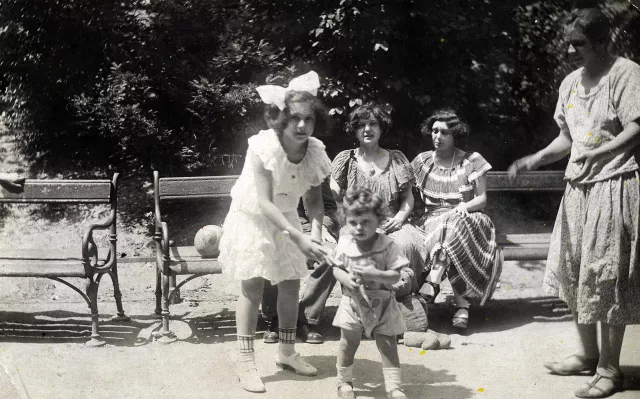 Auf diesem Foto in Wien, in einem Park, sieht man meine Cousine Selma, die aufpasst, dass ihr kleiner Bruder Daniel nicht hinfällt.