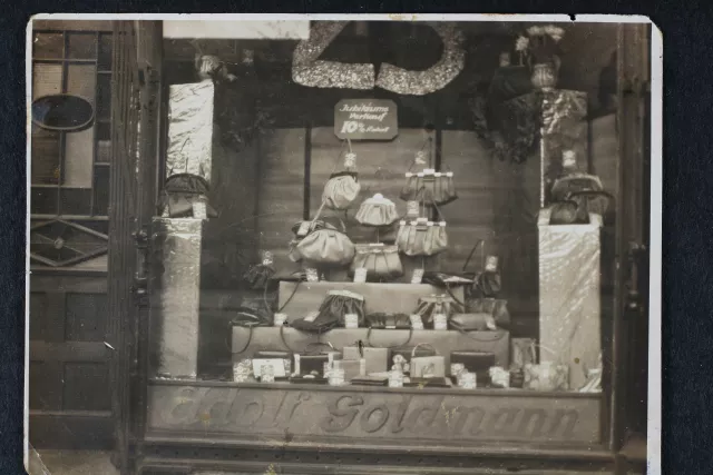 Das ist ein Schaufenster des Geschäftes meines Schwiegervaters in Dessau.