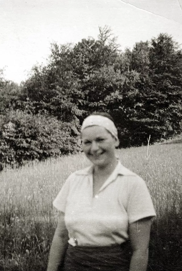 Hier ist Tante Baby auf dem Gut ihres Vaters Ödön Grünstein in Tornyosnémeti zu sehen.