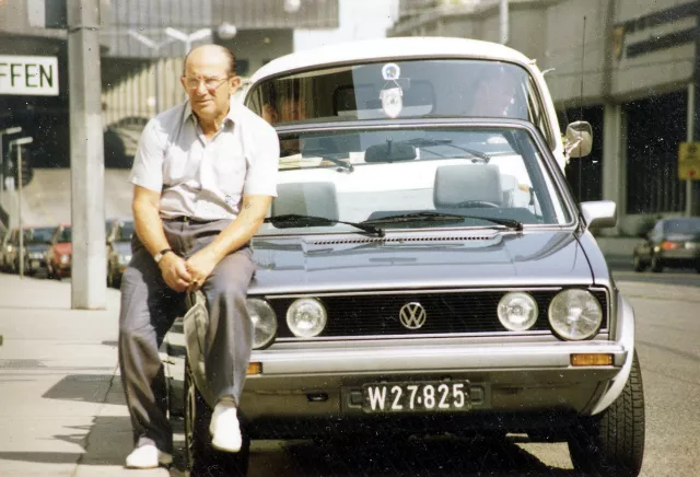 Da sitze ich auf dem Cabrio von meinem Sohn Tommy. Der Tommy hat bisher 50 Autos gehabt - er war ja in der Autobranche. Das ist ungefähr zehn Jahre her.