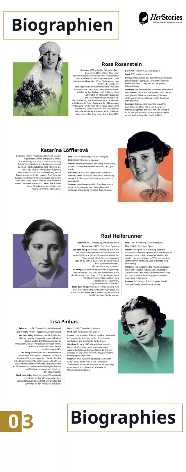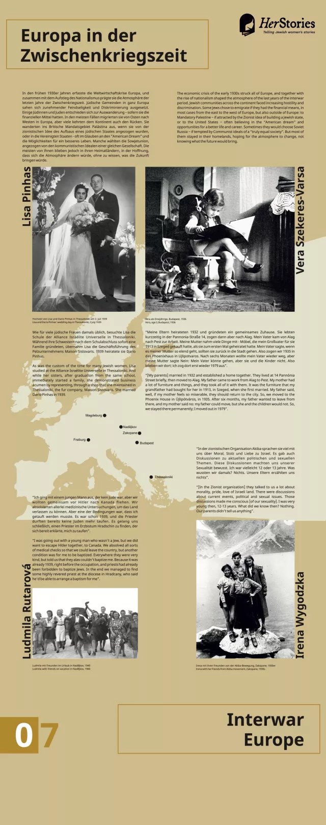 This exhibition, created in the framework of the HerStories project, conveys the multifaceted Jewish history of the 20th century in Europe through the biographies of seven Jewish women from Germany, Poland, Greece, Spain, Hungary, Slovakia and Czechia.
