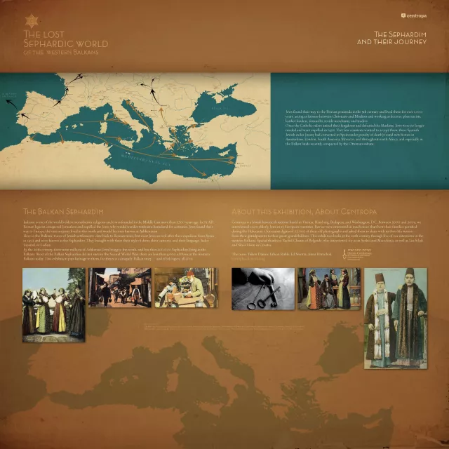 The exhibition was curated by Edward Serotta. Yukon Damov selected and edited the photos and stories from the Centropa archive. Additional editing by Fabian Rühle, Esther Cotoarba and Anna Kozemjakin. The design & implementation of the accompanying website, https://lostsephardicworld.org/, was done by Alexander von Freeden | LAIKA LAIKA, based on the print design of the exhibition by Miklós Fekete.