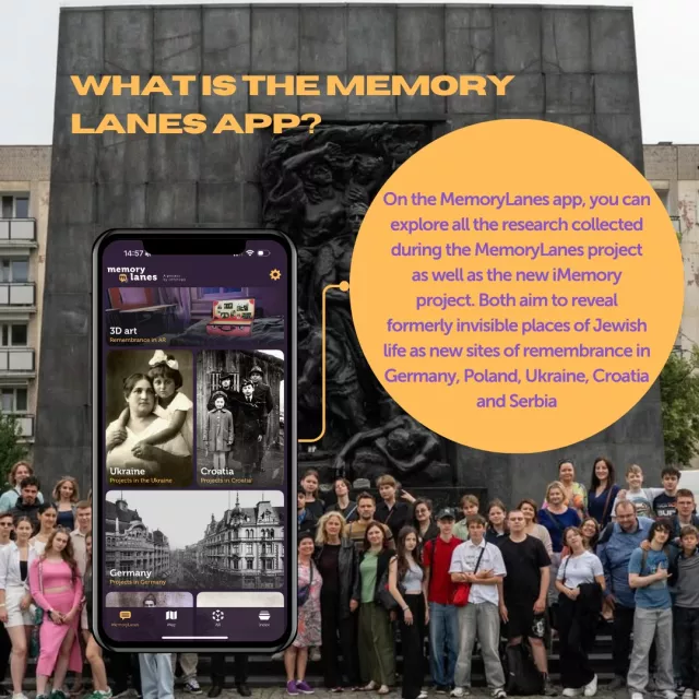 iMemory is a transnational educational project funded by the Foundation “Remembrance, Responsibility and Future” (EVZ) and the Federal Ministry of Finance (BMF). It builds on the foundations of the MemoryLanes project, with a renewed focus on the Jewish presence in Europe. Launched to mark the 80th anniversary of the end of World War II, the project invites young people from Germany, Poland, Serbia, Croatia, and Ukraine to explore and reflect on Jewish history and its relevance today. Through innovative teaching formats, youth exchanges, and creative outputs, iMemory addresses current issues such as antisemitism, prejudice, and cultural remembrance, while fostering a more inclusive and diverse Europe.