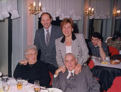 One of the important days of my life is my 50th wedding anniversary (1996). One Sabbath evening, Eliya put two tickets in my hand. He said "I want you to celebrate your 50th wedding annivesary in Israel". My grandson Shemi Barokas picked us up at the airport and took us to his home. We were in Israel for more than 20 days. We went all the way to Eilat, my husband bought me a necklace [she showed the necklace around her neck and said that she never took it off after that evening]. Another Sabbath evening, my daughter said "we are going out to dinner on Sunday night, get ready, I will come and pick you up". When we went to a fish restaurant on the Bosphorus, we saw the surprise; every member of the family apart from me had helped Lucy organize this. It was a wonderful evening. We celebrated our 50th wedding anniversary by cutting a cake.
