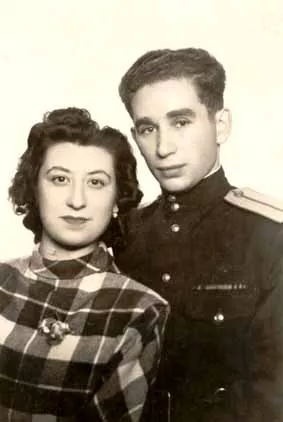 This is my brother Abram Feiman, after he returned from the army, and his wife Sheina. After the war Abram served in the army in Germany until 1949. In 1949 he returned to Tartu, and got married. This photo was taken in Tartu in 1949.