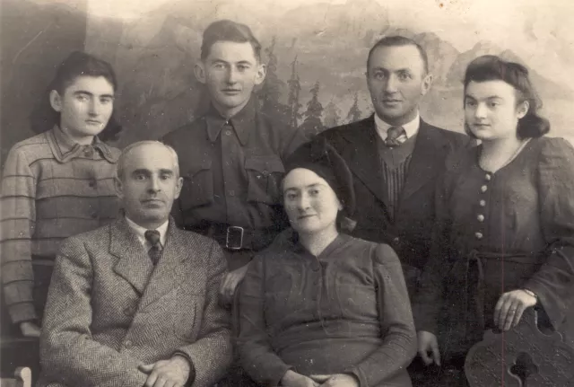 This is a photo of my mother's family taken in Cernauti in 1945. It was taken after we returned from Uzbekistan. My mother Adela is sitting in the centre. Next to her on the left is siting her brother-in-law, David Landberg, my mother's sister, Manea's husband. Behind David there is my sister Lusia and next to her on the right I, Fridric. Next to me is Uncle Berthold with his wife, Esea.