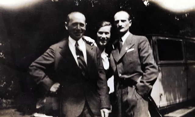 This is my father, Albert Federgrün. He is standing first from left with his sister, Regina and her husband Moniek or Mojzesz Griner. This picture was taken in 1935, but I don’t know where.