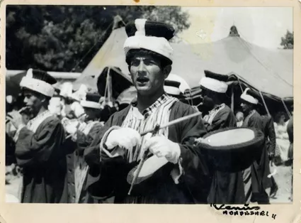 This photograph was taken in Adapazari, in the Janissary band that was formed with the military band, as the player of the small kettle drum. I played the kettle drum there. Kettle drum (Nakkare) is the name of the instrument, it is a percussion instrument that is used in the Janissary band of the Ottomans. I was a soldier then. They chose me for the Janissary band because I knew how to play from Edirne.