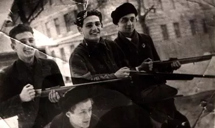 The picture was made during my studies at Medical Institute in 1938 in Moscow. This is shooting class. The last to the right is I , to the left from me is my friend Sasha Fainstein. Dima Vinogradov is lower to us. He was killed in action during Finnish campaign in 1940.