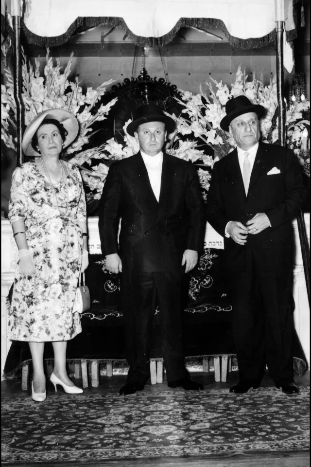 Here you can see Mr. Beraha, that is, me, getting married. I am waiting for the bride at the Beth Shalom synagogue of Athens. You can see my father, Carolos Beraha, on my right and my mother, Mathilda, on the left.