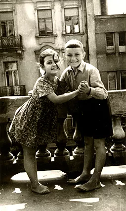 This is my son Alexander Lukinskiy having fun dancing on the balcony of my mother's apartment with his friend Anna Epstein, who is currently living in Israel. The photo was taken in Vilnius in 1957.