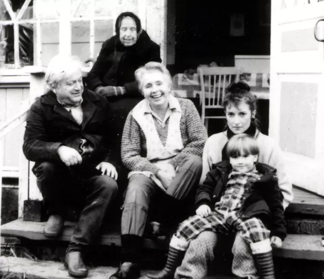 From left to right: me, my mother-in-law Prascovia Ghermanson, my wife Galina Grin, nee Ghermanson, my son Andrey's wife Olga Grin, holding my grandson Pyotr Grin. This photo was taken at our dacha near Moscow in 1988 by my son Andrey Grin.