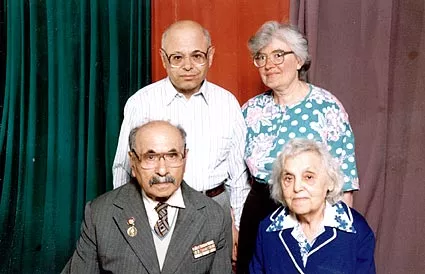 My family. Sitting: I, Alexandr (Shaya) Nepomniaschy, and my wife Revekka Mexina. Standing: my son Valery Nepomniaschy and his wife Anna Napomniaschaya, nee Yahotinskaya. They are mathematicians. Photo made in Chernovtsy in 1998.