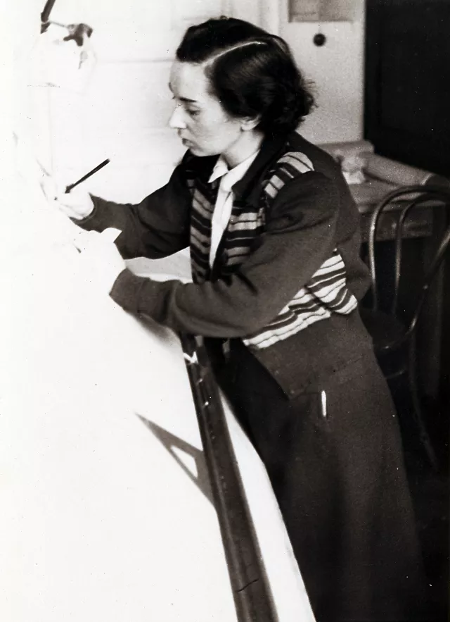 This is me at work. This photo at the drawing board was taken in the hydraulic press department in the 1950s.