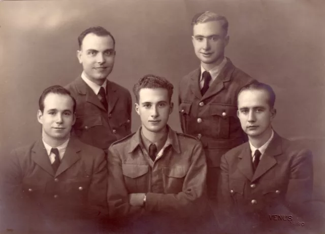 Standing first from right is me, standing first from left is Antonis Papahrisanthou, second from left seated is my brother Danny, seated on the left is a flying officer and seated on the right is Pandelis Tsihlis.