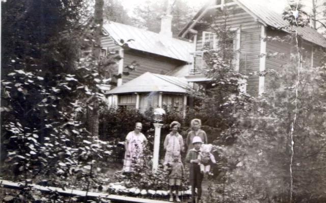 This picture was taken near our summer house in Elva in 1927. From left to right: my grandmother Vera Pasternak, I (in the front), my cousin Alexander and our governesses behind us.