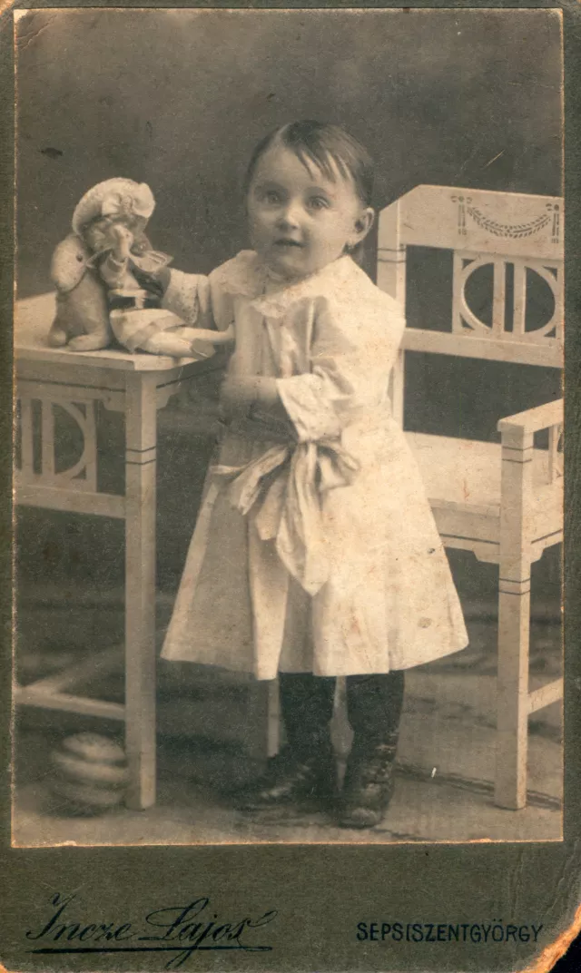 The message on the postcard: "Souvenir, Nagyborosnyo, 1st of May 1914. Annuska at the age of 2 and a quarter".