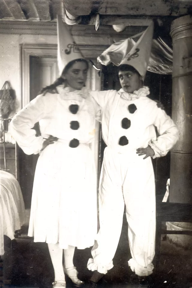 Here you can see me and my friend Rebecca. I wear the costume of Malvina, and she performed Pierro. We made them out of the fabric, preparing specially for my sister Lilia, who had to be born in some months. We both participated in the theatre studio and wanted to become actresses.