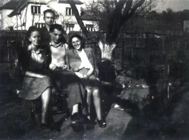 I loved to take a picture of anything that lived and moved. I wanted to record everything and I took a plenty of photos. I think that I had some rolls of film which remained undeveloped. The camera had a brochure in his box, and I joined the instructions. The first few photos were unsuccessful, because I didn't open the diaphragm correctly. And sometime the camera or the subject moved. It was forbidden to move, because otherwise the photo became obscured. The camera wasn't so good like these from now, that you could move because it caught you in a split second, and I learnt this from my experience. It was used for the photo made in our yard, in which on one side of the bench Edit is sitting with her back and on the other side there's Andris sitting, as if they were upset with each other. I took this photo. My mother took the next photo, on which we sat arm-in-arm on the bench, Andris sat in the center, and I was on his left side and Edit on his right side. Potyi Vadasz, a boy from our company, stood behind us. We called him Potyi because he was small. When I knit a pullover for Andris, - he was a tall, handsome boy - I told him that if he was as small as Potyi, I had less to work. He asked me if I should marry Potyi. I answered that never, because I was taller with a head like Potyi.