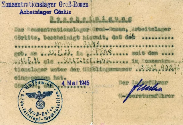 Anna Hyndrakova's ID from Gorlitz labor camp