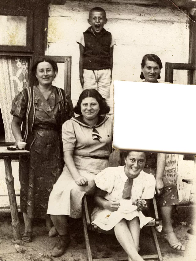 We are there in Kazimierz with my sister Elka and our friends. My face was cut from this photo, because one boy who loved me, would have a souvenir...