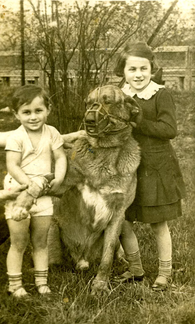 We had a large dog, who was named Tiger because he looked exactly like a tiger. He was huge. He guarded us, but we had more dogs back then. They were all huge. When my brother was born, my parents showed him to him, that here's Karlicek, you?ve got to guard him. When my mother put the carriage in front of our building, he?d lie down there, and everyone had to give him a wide berth. He?d never let anyone even get close to him. To be on the safe side we gave him a muzzle, that had to be so that some sort of accident wouldn't happen. At night he was very important on those grounds, he?d signal if anyone wasn?t wanting to climb over the fence. There were thieves, who only wanted fruit. There were large alleys of fruit trees there, cherries, apples and pears. My parents took care of them, because they were the superintendents. They fruit would be eaten at camp. Whoever in the camp wanted, could pick some, because everything was free.