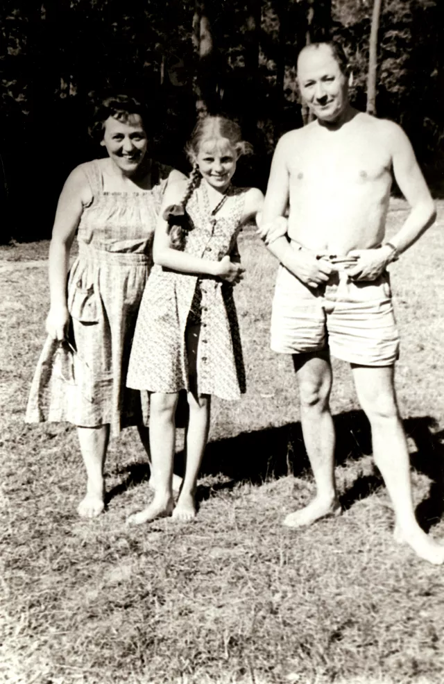 Here you can see me, my husband and Irena Grudzinska, our friend's daughter. We are on holidays. We were neighbors. She was the same age as my son Wlodek, and her brother was the same age as my younger son, Krzysio. They learned French together. Now she's a professor at Boston University.