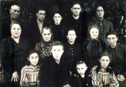 This is our family. When W went to see my mother's sister Ida Dolburg in Uzhorod. From left to right, 1st row, sitting1: my mother younger sister Ulia Tkachs daughter; my younger brother Igor; Ida's son Vladislav and Ida's daughter Lilia. 2nd row: Pesia Yurkovetskaya, wife of my father's brother Moshe; my father brother Unchl's widow Surah; my mother Polia Yurkovetskaya; my maternal grandmother Zelda Treistman; my mother's younger sister Ida Dolburg. 3rd row, standing: my father's older brother Moshe Yurkovetski; I, Arkadi Yurkovetski; my mother's younger sister Ulia Tkach (nee Treistman); Ida's husband; my father Efim Yurkovetski. This photo was taken in Uzhorod in 1951.